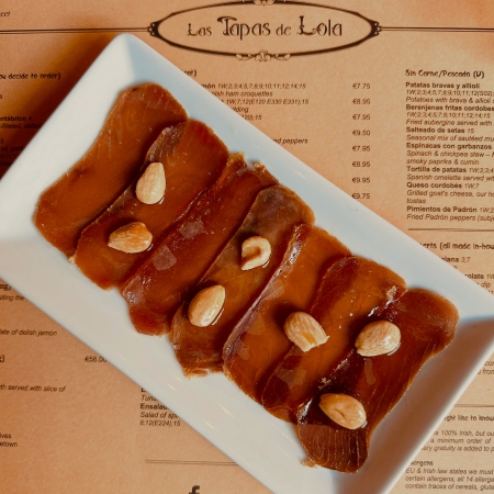 Pica-PicaPescado Mojama de Barbate € 9.95 Stunning cured tuna (Barbate, Cádiz), almonds, olive oil < Return to Menu Tweet