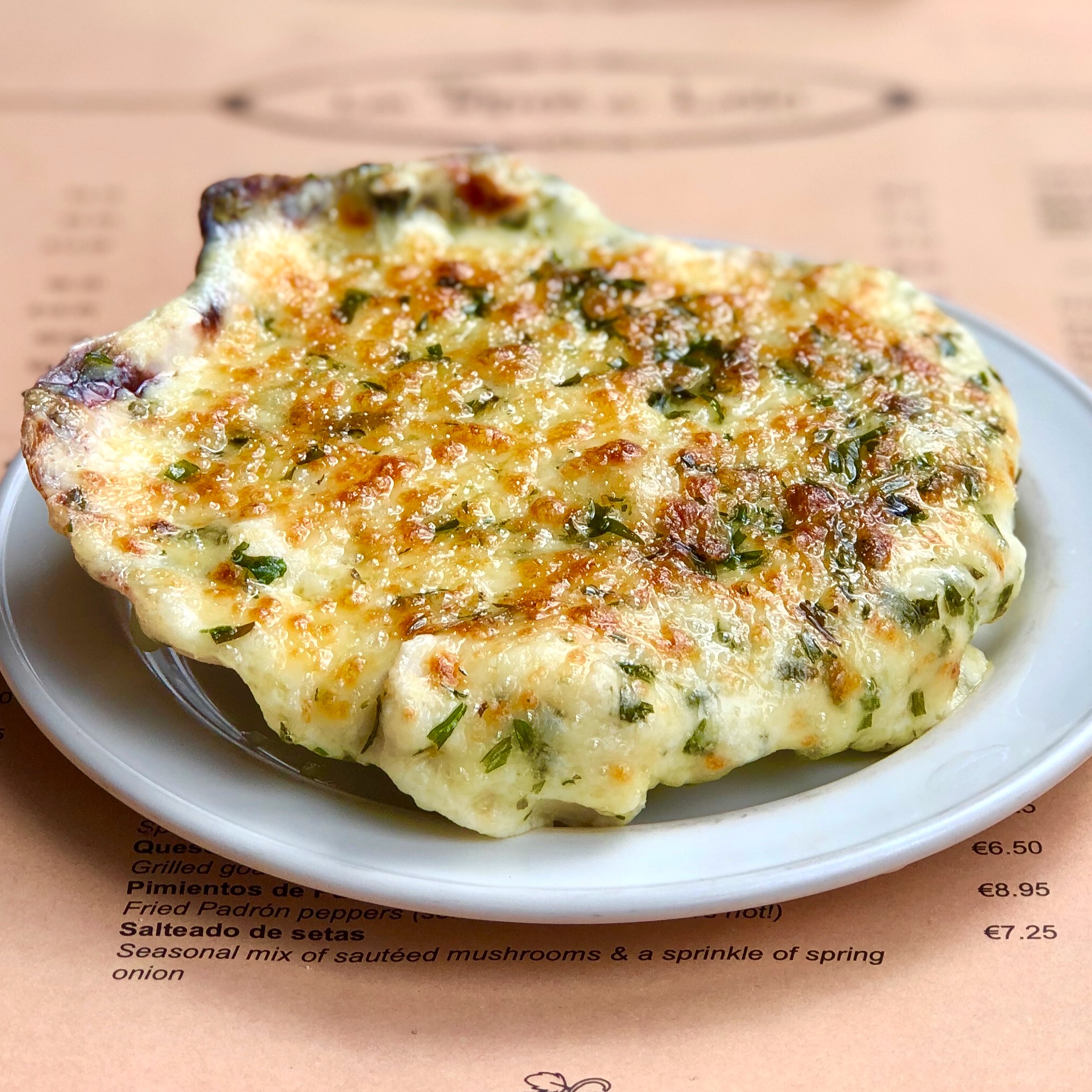 "Looking to change up your regular tapas order? *We still love you patatas bravas* Enter Vieira Gratinada, or scallops au gratin – a summer staple at Las Tapas de Lola. Scallops baked in their shell in a rich creamy sauce covered in melty cheese. The perfect hybrid of summery seafood and a wintery hug in a bowl, for the July that doesn't know what it is."
